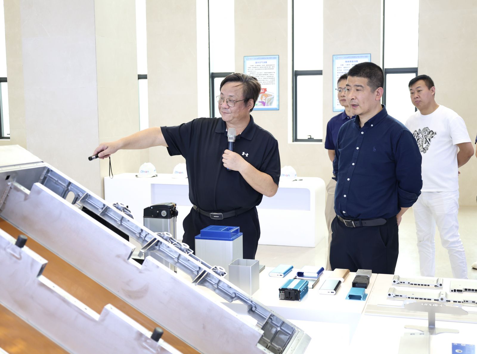考察期间,束晓伟市长一行先后参观了展厅及生产一线,实地了解企业发展概况与产业实力。在展厅,郑玉林详细介绍了公司产品体系、市场布局、品牌建设及核心技术优势;走进生产车间,考察团现场观摩自动化生产线、智能工业机器人作业流程,深入了解公司数字化智造、精益生产及全流程品质管控体系,对南南铝在铝产业高端化、智能化发展方面的实践成果给予高度评价。