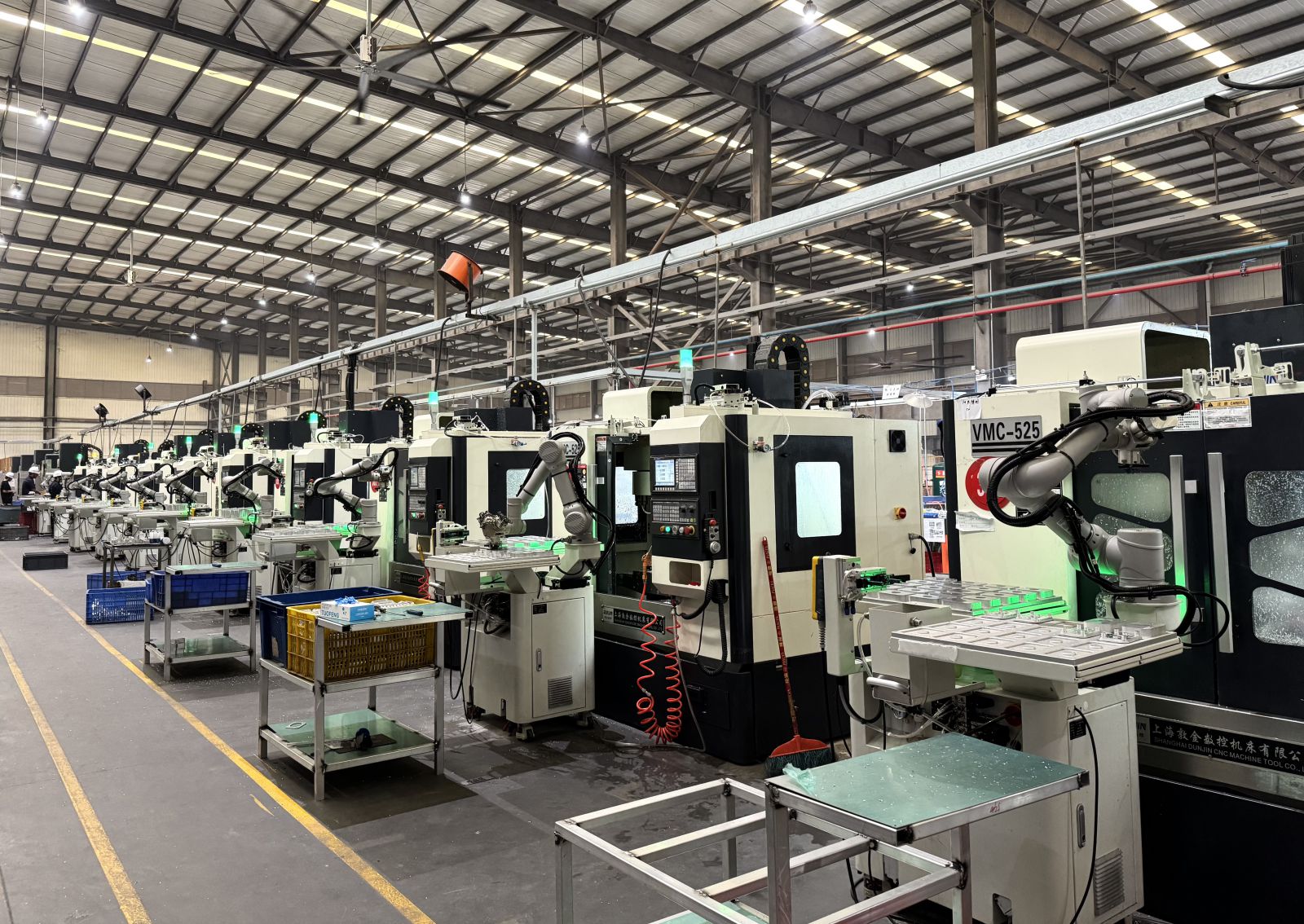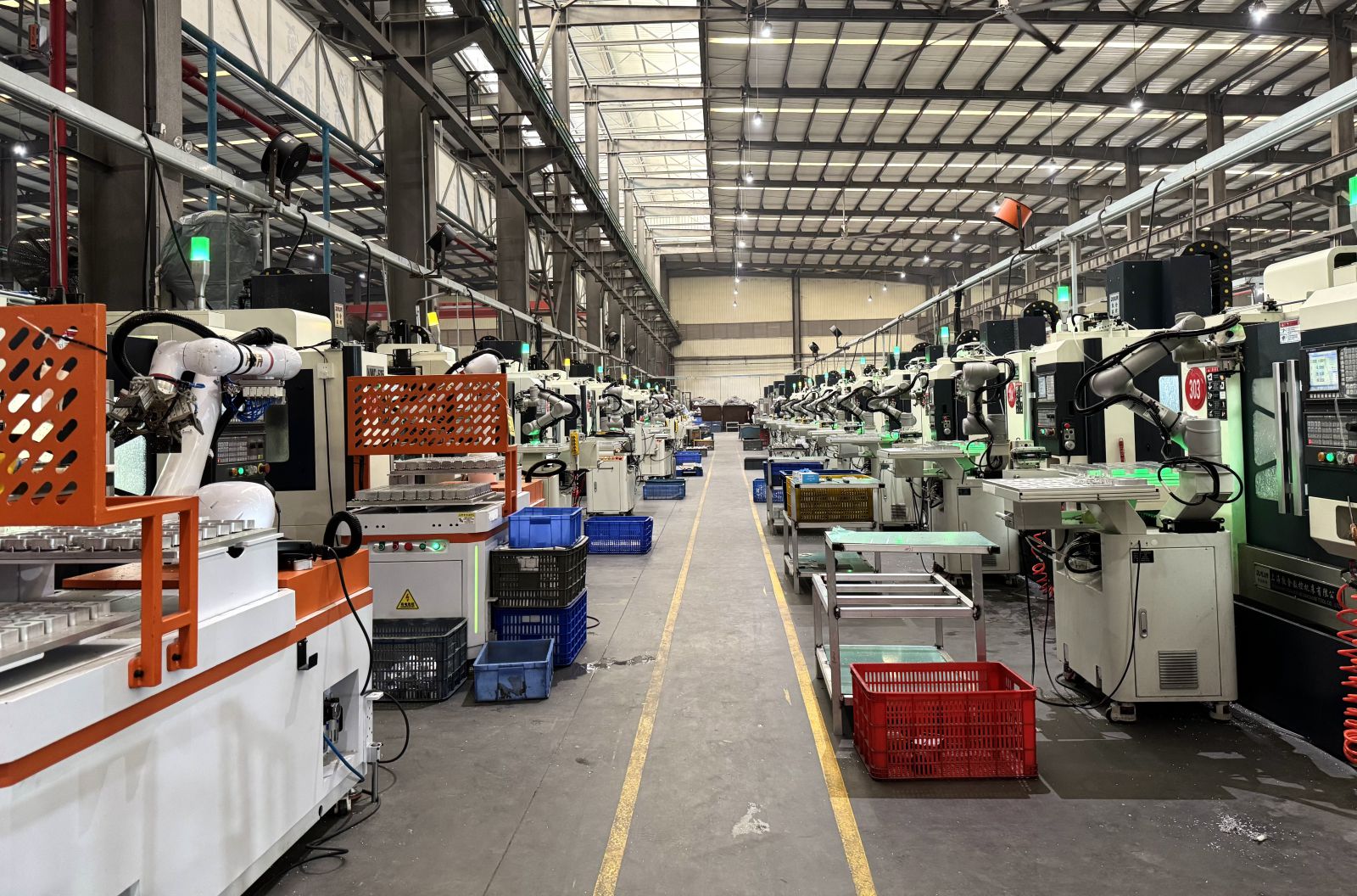 近日,天恒公司杆件车间54套机器人CNC工作站正式投用,机器人与CNC设备高效联动,精准完成自动上下料作业。作为企业2026年智能化升级的重要成果,标志着公司以“机器人+CNC”深度融合模式,迈入智能化、规模化新阶段。